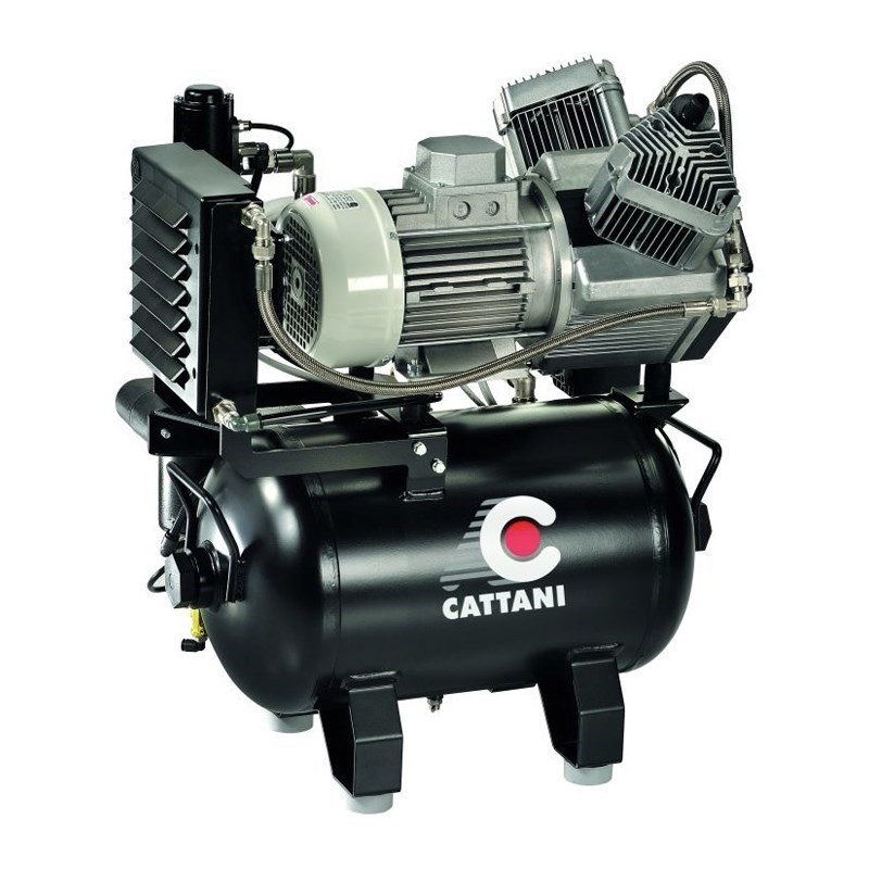 Компрессор стоматологический CATTANI на 3-4 установки - трехцилиндровый, безмасляный, оборудованный системой фильтров и охлаждения, обеспечивает подачу сжатого воздуха высокого качества и чистоты.