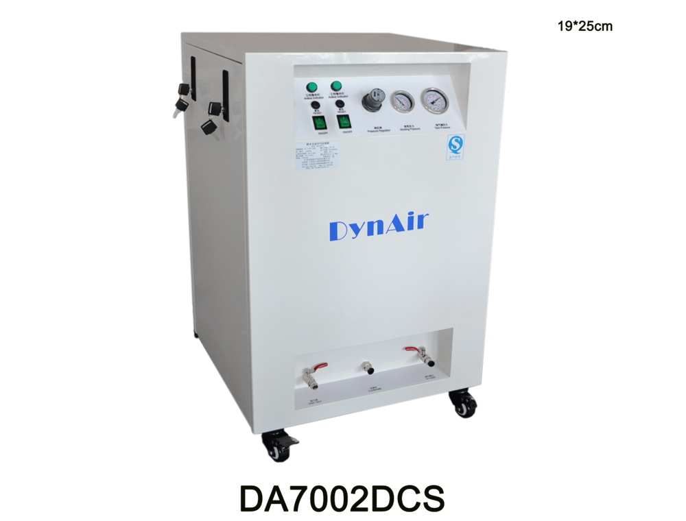 Компрессор DA7002DCS с кожухом, с осушителем, 136л/мин, ресивер 50 л, безмасляный, на 2 установки с внешними вакуумными агрегатами.