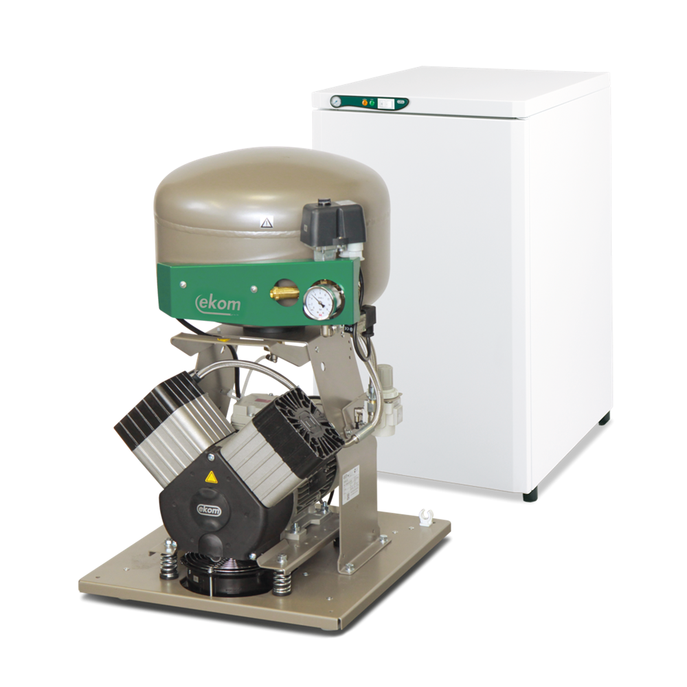 EKOM DK50 2V/M - безмасляный компрессор без шкафа, с мембранным осушителем, для двух стоматологических установок (108 л/мин, 5 – 7 бар)