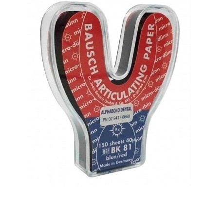 Несколько большая толщина несущего материала позволяет производить эту бумагу в форме подковообразных полосок. Эта отштампованная бумага без затруднений накладывается на зубную поверхность и не требует применения специальных фиксирующих вилок или пинцетов.