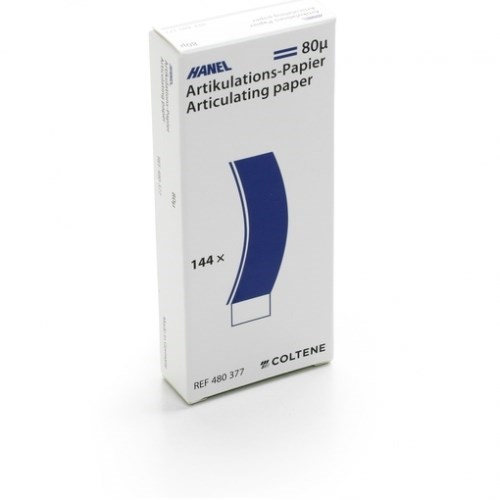 Hanel артикуляционная бумага I-, C- и U-образной формы, покрытая с обеих сторон краской, используемая в гнатологии. Обладает высоким маркирующим эффектом. При использовании на моделях может использоваться многократно, так как красящее покрытие обладает способностью к регенерации.