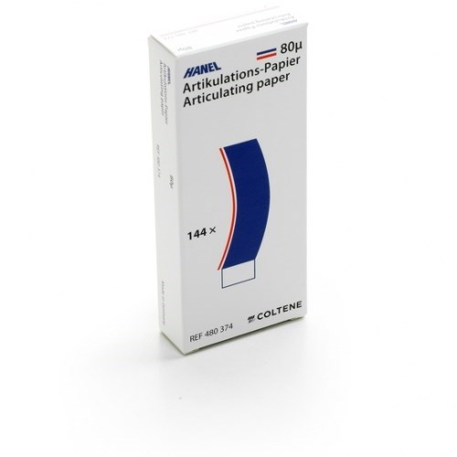 Hanel артикуляционная бумага I-, C- и U-образной формы, покрытая с обеих сторон краской, используемая в гнатологии. Обладает высоким маркирующим эффектом. При использовании на моделях может использоваться многократно, так как красящее покрытие обладает способностью к регенерации.