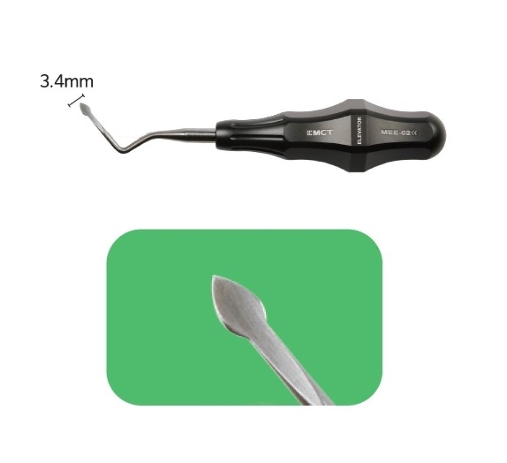 Корневой элеватор Bernard для удаления отломков корней, левый, 3.4 ммMEE-02 Стоматологический корневой элеватор E02 Bernard для удаления отломков корней, левый, Mr.Curette Tech, Южная Корея