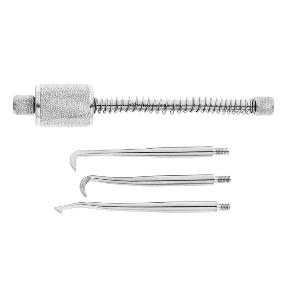 Для снятия зубных коронок и протезов и прочих ортопедических конструкций с постоянного и временного цемента применяется коронкосниматель с активным механизмом по Мореллю производства компании HLW Dental Instruments.