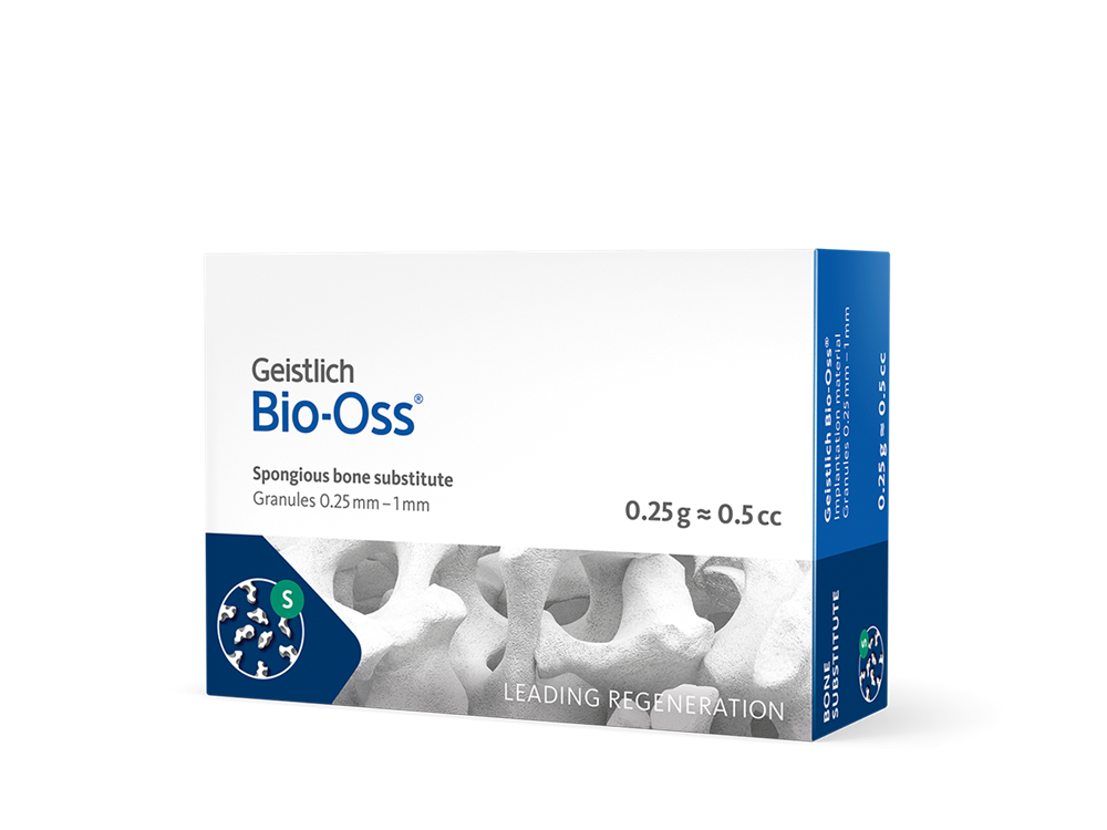 Geistlich Bio - Oss ® ( Био Осс ) - натуральный костнозамещающий материал, состоящий из минеральных компонентов бычьей кости. Благодаря сохранной трабекулярной и пористой архитектуре, материал Geistlich Bio-Oss® является отличной направляющей роста естественной кости и включается в процесс ремоделирования.
