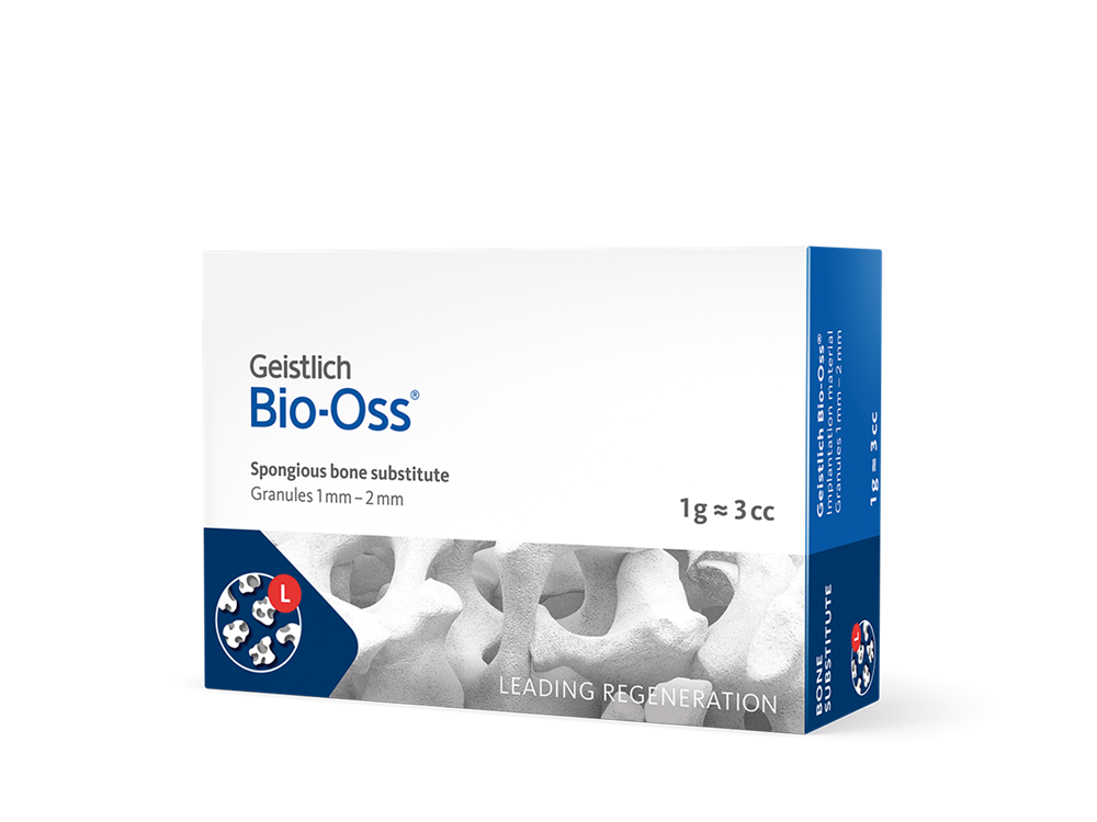 Geistlich Bio - Oss ® ( Био Осс ) - натуральный костнозамещающий материал, состоящий из минеральных компонентов бычьей кости. Благодаря сохранной трабекулярной и пористой архитектуре, материал Geistlich Bio-Oss® является отличной направляющей роста естественной кости и включается в процесс ремоделирования.
