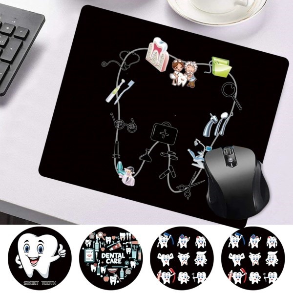 Функциональный аксессуар для комфортной работы врача дополнит рабочий стол специалиста. Коврик для компьютерной мыши выполнен из качественного заменителя кожи. Размеры коврика 25×21 см. На коврике изображен большой контур зуба с циклом ухода за ним.