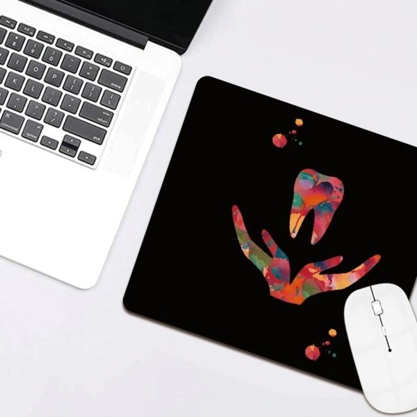 Функциональный аксессуар для комфортной работы врача дополнит рабочий стол специалиста. Коврик для компьютерной мыши выполнен из качественного заменителя кожи. Размеры коврика 25×21 см. На коврике для мыши изображен красочный зуб в заботливых ладонях специалиста.