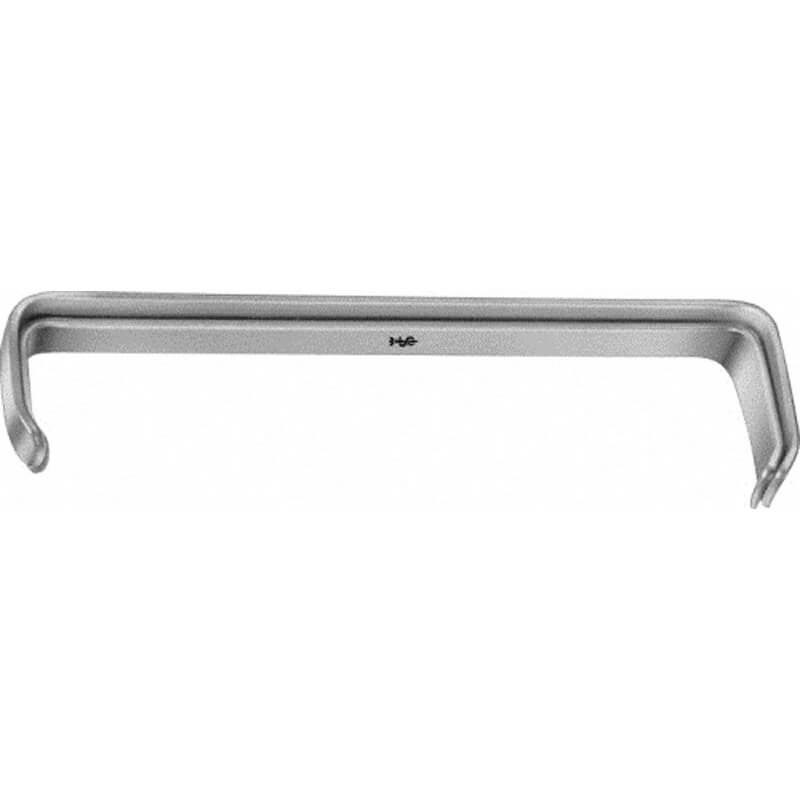 Крючок по FARABEUF, двусторонний, длина 125 мм, BT020R, B.Braun (Aesculap, Германия) выполнен в виде пластины с загнутыми скобами во внутрь, он изготовлен из прочной и качественной медицинской стали, которая выдерживает многократные стерилизации. Инструмент используется для разведение краев глубокой раны вблизи крупных сосудов или отведение объемных образований. За счет минимального удельного давления на ткани пластинчатые крючки Фарабефа являются идеальным инструментом для отодвигания тканей, их фиксирующая роль значительно меньше.