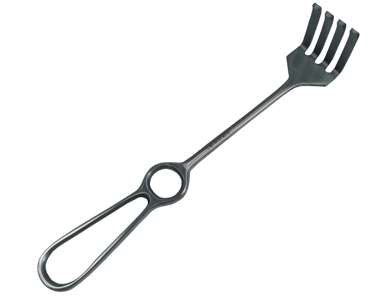Крючок хирургический четырехзубый тупой № 3 – медицинский инструмент, представляющий собой заостренный или тупой крючок для расширения и удержания краев раны или фиксации плотной ткани. Применение: в хирургии для расширения и удерживания краев раны.