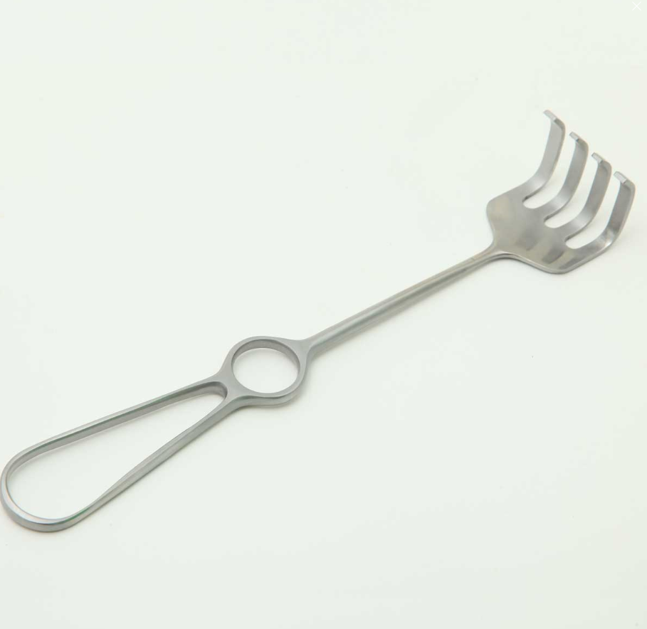 Крючок хирургический четырехзубый тупой № 1 – медицинский инструмент, представляющий собой заостренный или тупой крючок для расширения и удержания краев раны или фиксации плотной ткани. Применение: в хирургии для расширения и удерживания краев раны.
