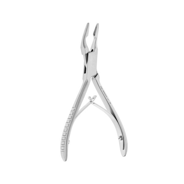 Кусачки костные конструкции ФРИДМАННА микро. Имеют двойной разнонаправленный изгиб по плоскости. Ширина рабочей части не более 3 мм. Ручки снабжены плоской разводной пружиной соединяющейся в центре. Общая длина инструмента не менее 12 см.
