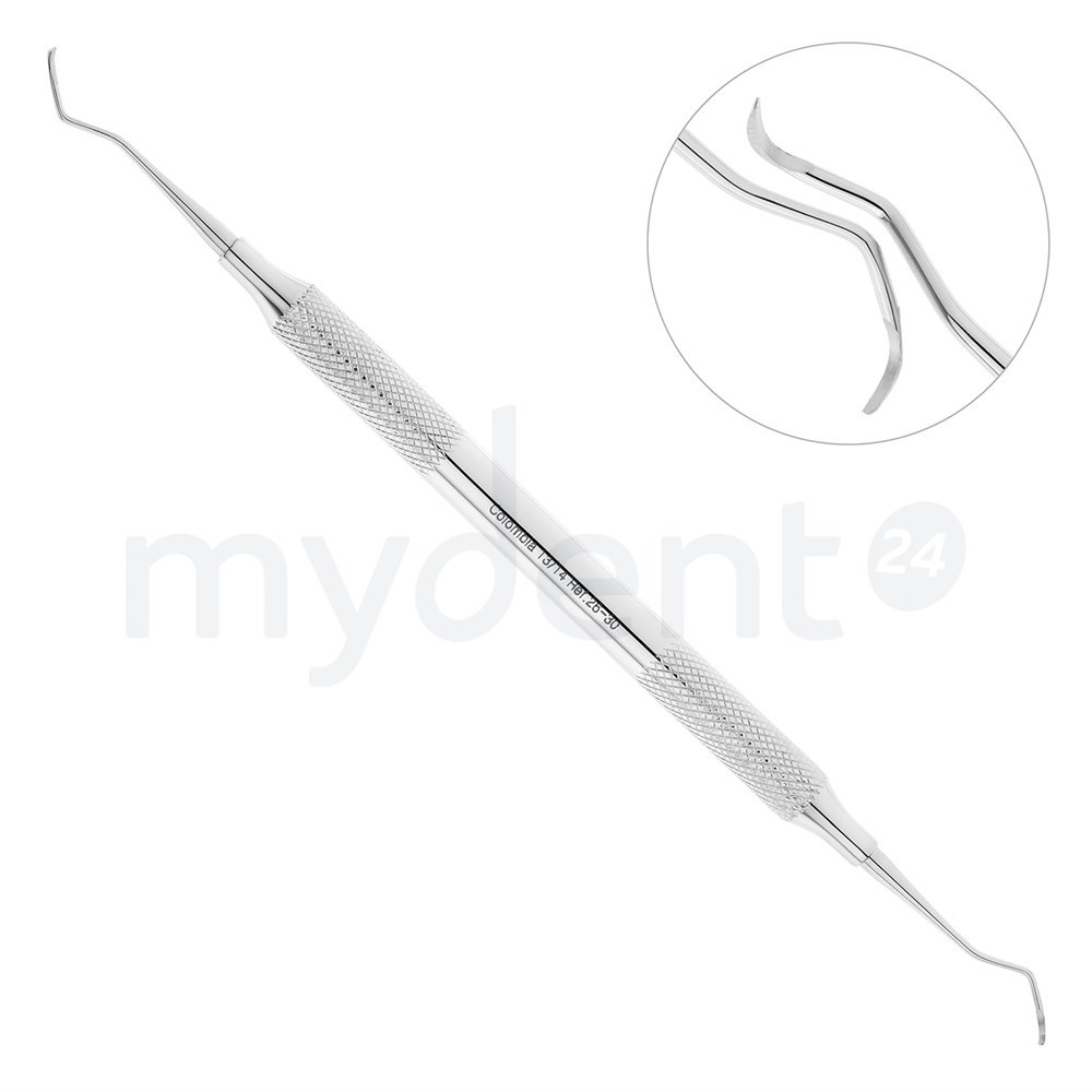 Кюрета стоматологическая Columbia формы №13/14 торговой марки HLW Dental Instruments предназначена для удаления поддесневых зубных отложений на всех поверхностях моляров обеих челюстей, а также на оральных поверхностях фронтальных зубов.