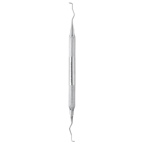 Двусторонняя пародонтологическая кюрета Gracey для снятия зубных отложений. Форма 11/12 предназначена для работы мезиальной зоной премоляров, моляров.