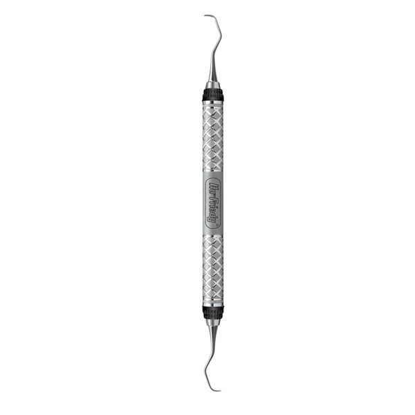 Двусторонняя кюрета серии Gracey с черной силиконовой вставкой на ручке разработана компанией Hu-Friedy специально для поддесневой обработки фронтальных зубов. Рабочая часть позволяет очищать зубной налет и камень на любых поверхностях передних зубов.