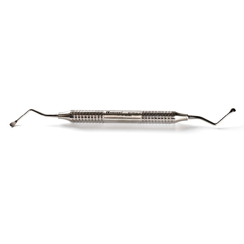 Костная кюрета (кюретажная ложка, костная ложка) Lucas изогнутая двухсторонняя плоская, овальные рабочие части диаметром 3,5 мм, полая ручка диаметром 10 мм.