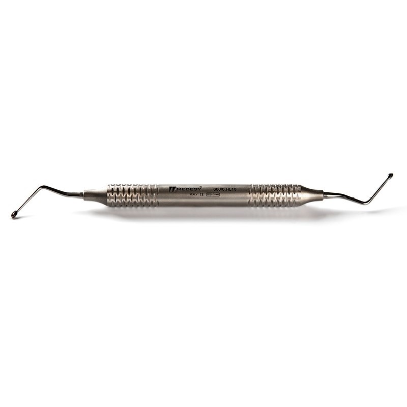 Кюретажная ложка (костная кюрета, костная ложка) Hemingway N.0 изогнутая двухсторонняя, овальные рабочие части диаметром 2,0 мм, полая ручка диаметром 10 мм.