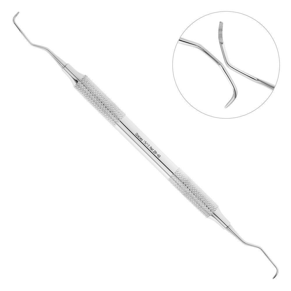 Рабочая часть двустороннего инструмента имеет полукруглое сечение, закругленный кончик и лезвие, заточенное только с одной стороны. Режущая кромка расположена под более острым углом по сравнению с кюретой формы №11/12, что позволяет с легкостью адаптировать инструмент к использованию при внутриротовой опоре.