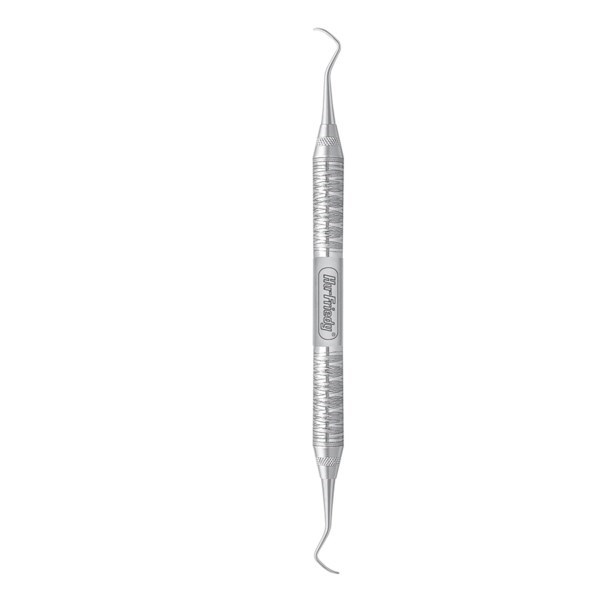 Универсальная двусторонняя кюрета серии Radcliff от Hu-Friedy подходит для наддесневой и поддесневой обработки вестибулярной и оральной поверхности фронтальных зубов. Заточка по двум параллельно идущим кромкам позволяет использовать инструмент максимально эффективно в условиях ограниченного пространства.
