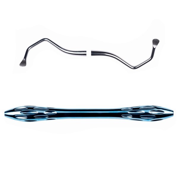 Двусторонняя стоматологическая кюретка предназначена для проведения хирургических манипуляций в пародонтальной хирургии и имплантологии: для безопасного поднятия слизистой при проведении открытого синус-лифтинга (поднятия дна в боковой стенке гайморовой пазухи).