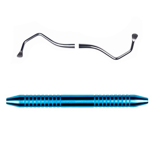 Двусторонняя стоматологическая кюретка предназначена для проведения хирургических манипуляций в пародонтальной хирургии и имплантологии: для безопасного поднятия слизистой при проведении открытого синус-лифтинга (поднятия дна в боковой стенке гайморовой пазухи).