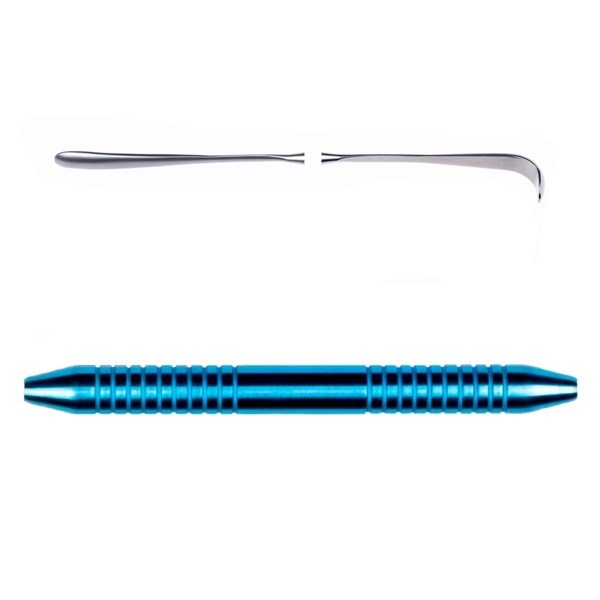 Двусторонняя стоматологическая кюретка предназначена для проведения хирургических манипуляций в пародонтальной хирургии и имплантологии: для безопасного поднятия слизистой при проведении открытого синус-лифтинга (поднятия дна в боковой стенке гайморовой пазухи).