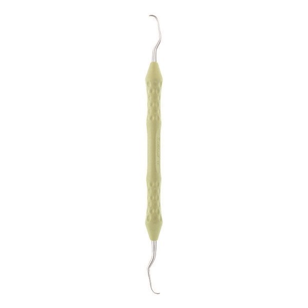 Кюретка стоматологическая, по GRACEY, 5/6, DB582R, B.Braun (Aesculap, Германия) предназначена для удаления поддесневого и незначительного наддесневого зубного камня, грануляционных и эпителиальных тканей зубодесневого кармана, размягченных инфицированных элементов зубного цемента. Инструмент состоит из ручки салатового цвета, функционального стержня и рабочей части, изготовленной из нержавеющей части. Рабочая часть имеет закругленный кончик, режущие (боковые) края, округлую спинку.