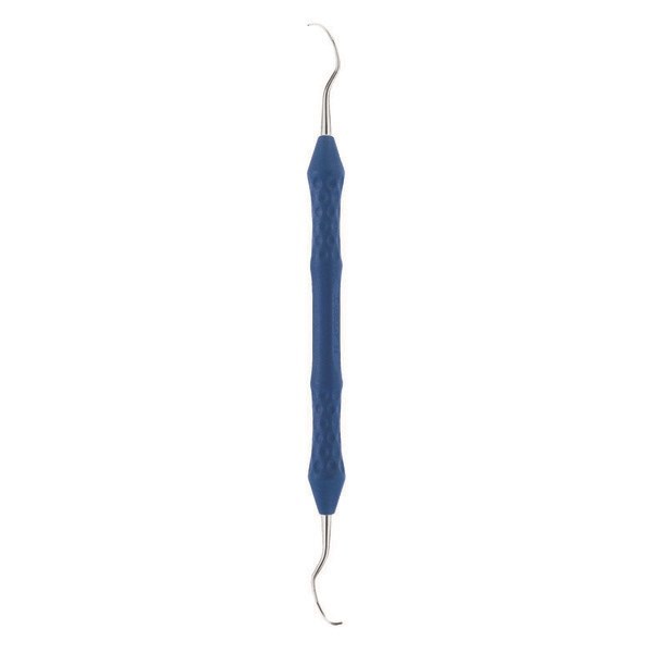 Кюретка стоматологическая, по LANGER L3/4, DB331R, B.Braun (Aesculap, Германия) предназначена для удаления поддесневого и незначительного наддесневого зубного камня, грануляционных и эпителиальных тканей зубодесневого кармана, размягченных инфицированных элементов зубного цемента. Инструмент состоит из ручки синего цвета, функционального стержня и рабочей части, изготовленной из нержавеющей части. Рабочая часть имеет закругленный кончик, режущие (боковые) края, округлую спинку.