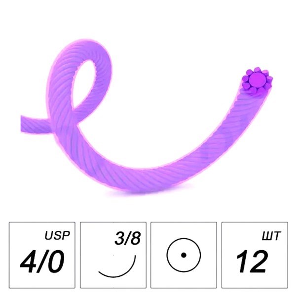 Лактисорб - плетеная нить 4/0 75 см (фиолетовая), игла колющая 20 мм 3/8, 12 шт