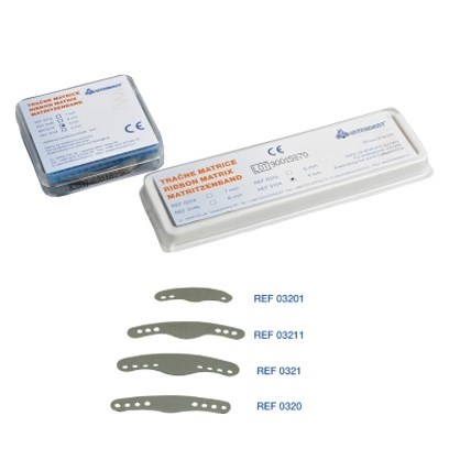 Ленточные матрицы применяются для разграничения контактных пунктов рядом стоящих зубов, а также используются при реставрации полости зуба. С помощью матрицы восстанавливается апроксимальная стенка зуба и создается межзубной контактный пункт (область), т.е. воссоздается правильная анатомическая форма зуба здесь.