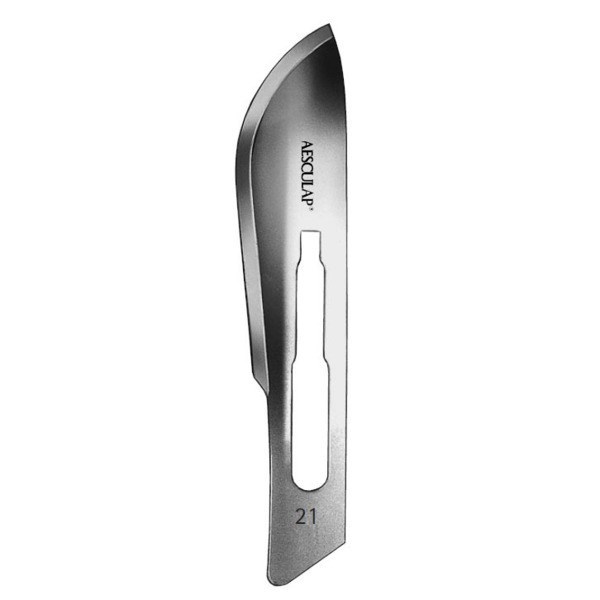 Скальпель №21, лезвие, стерильное, ББраун (B.Braun) Aesculap, Германия, BB521. Лезвия изготовлены из нержавеющей стали и предназначены для рассечения мягких тканей и сосудов в полости рта во время хирургических и пародонтологических операций. Они закрепляются на рукоятках перед использованием и удаляются после проведения манипуляций. Подходят для ручек №4.