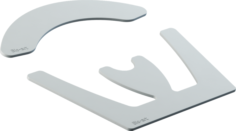 Описание: Линейка для определения камперовской и франкфуртской горизонтали используется при регулировке верхнего воскового валика в тотальных протезах для определения окклюзионного (камперовского) и горизонтального (межзрачкового) планов.