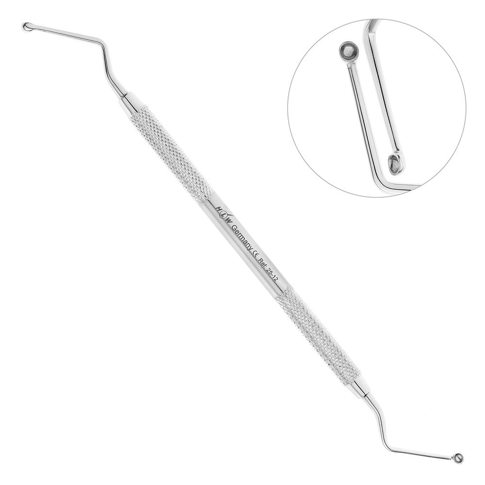 Для удаления мелких фрагментов из лунки, а также кюретажа грануляционных тканей используется двусторонняя кюретажная ложка Martin торговой марки HLW Dental Instruments.