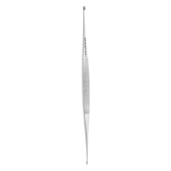 Ложка кюретажная двусторонняя прямая конструкции ВИЛЛИГЕРА. Рабочие части прямые. Кончик рабочей частей пресдтавляет собой ложечку овальной с острыми гранями. Максимальная ширина рабочей части не более 2 мм с одной стороны и не менее 2,5 мм. Ручка плоская с поперечными насечеками.