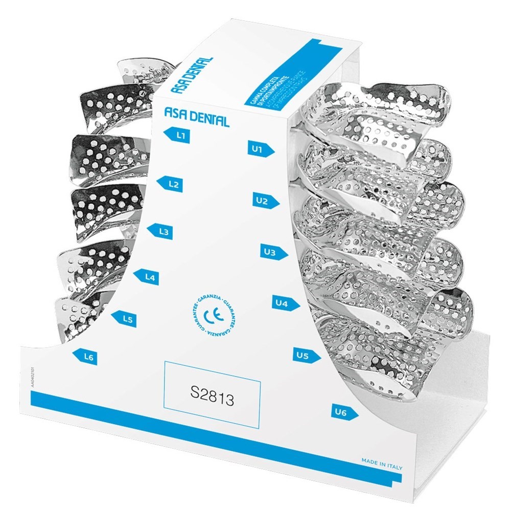 Ложка слепочная, набор 11 штук, с перфорацией без бортиков для беззубых челюстей под полиэфирные материалы с острыми бортиками.