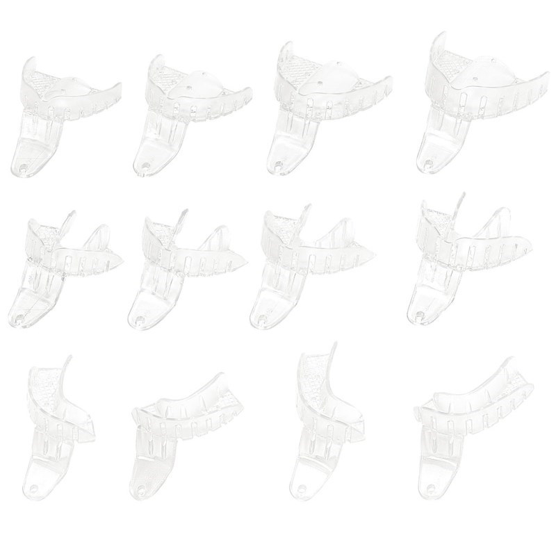 Ложка слепочная, набор 12 штук, пластиковая с перфорацией без бортиков автоклавируемые, состав: 8 полных ложек, 4 половинки