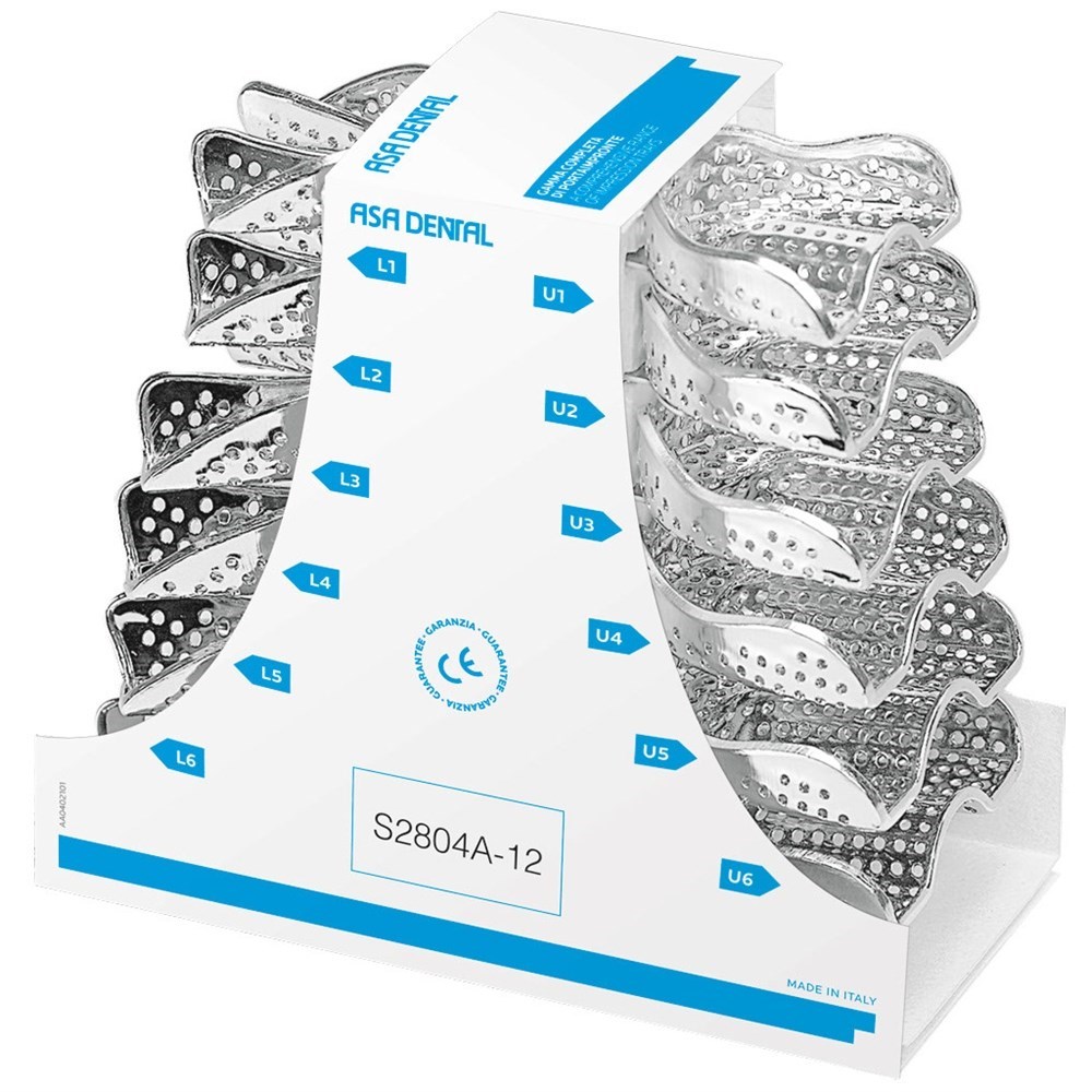 Ложка слепочная с перфорацией с бортиками, набор 12 штук. (низ: XL, L, M, S, XS, XXS, верх: XL, L, M, S, XS, XXS ).
