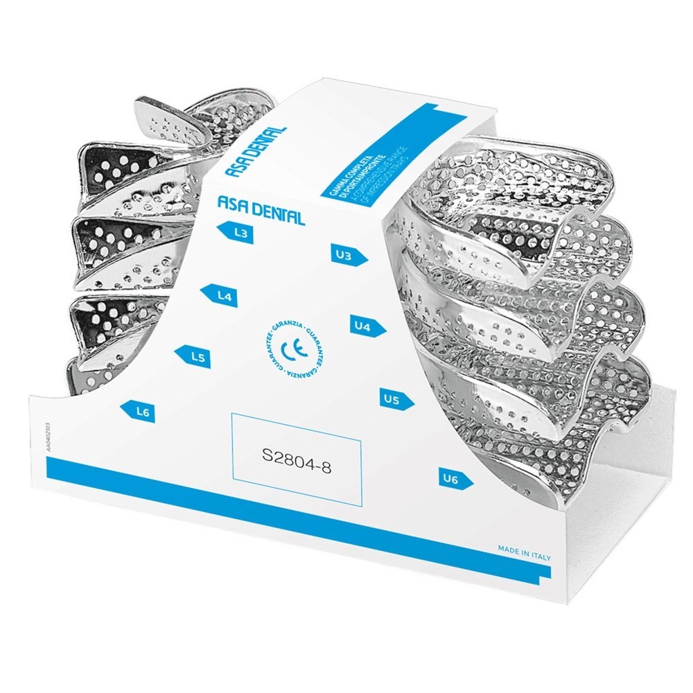 Ложка слепочная с перфорацией с бортиками, набор 12 штук. (низ: XL, L, M, S, верх: XL, L, M, S).