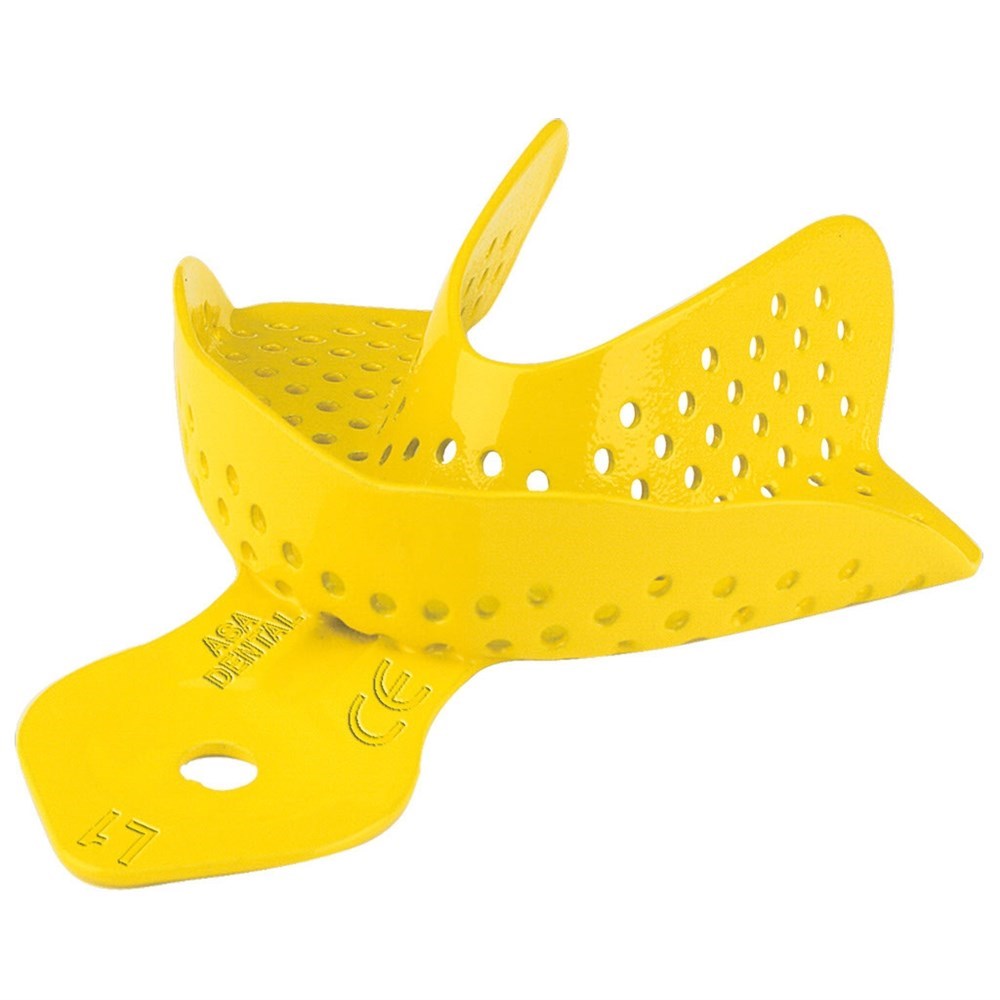 Ложка слепочная нижняя малая (S) с перфорацией без бортиков, алюминий (желтая)