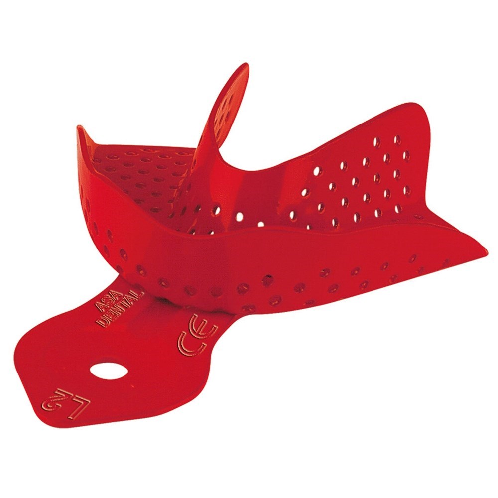 Ложка слепочная нижняя средняя (M) с перфорацией без бортиков, алюминий (красная)