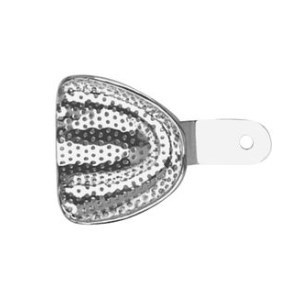 Ложка слепочная перфорированная HLW (Германия) применяется для снятия слепков альгинатными, силиконовыми и другими оттискными материалами, не обладающими достаточной прилипаемостью, чтобы удержаться на ложке без отверстий. Инструмент имеет ручку для удержания и ориентировки ее в полости рта.