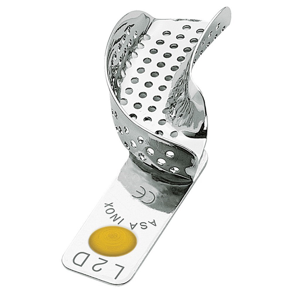 Ложка слепочная верхняя малая (S) половина, с перфорацией без бортиков (левый верх-правый низ). С силиконовой цветокодированной вставкой для более легкого извлечения слепочной ложки из полости.