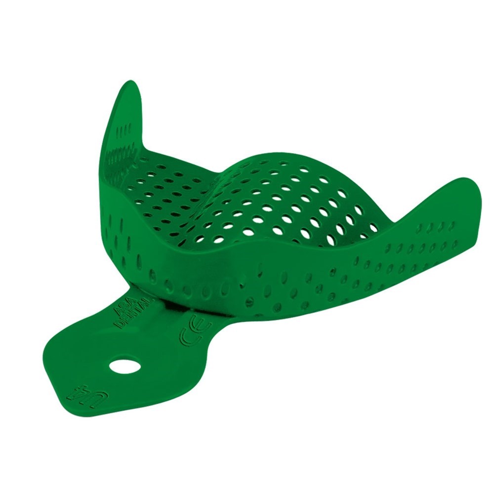 Ложка слепочная верхняя очень большая (XL) с перфорацией без бортиков, алюминий (зеленая)