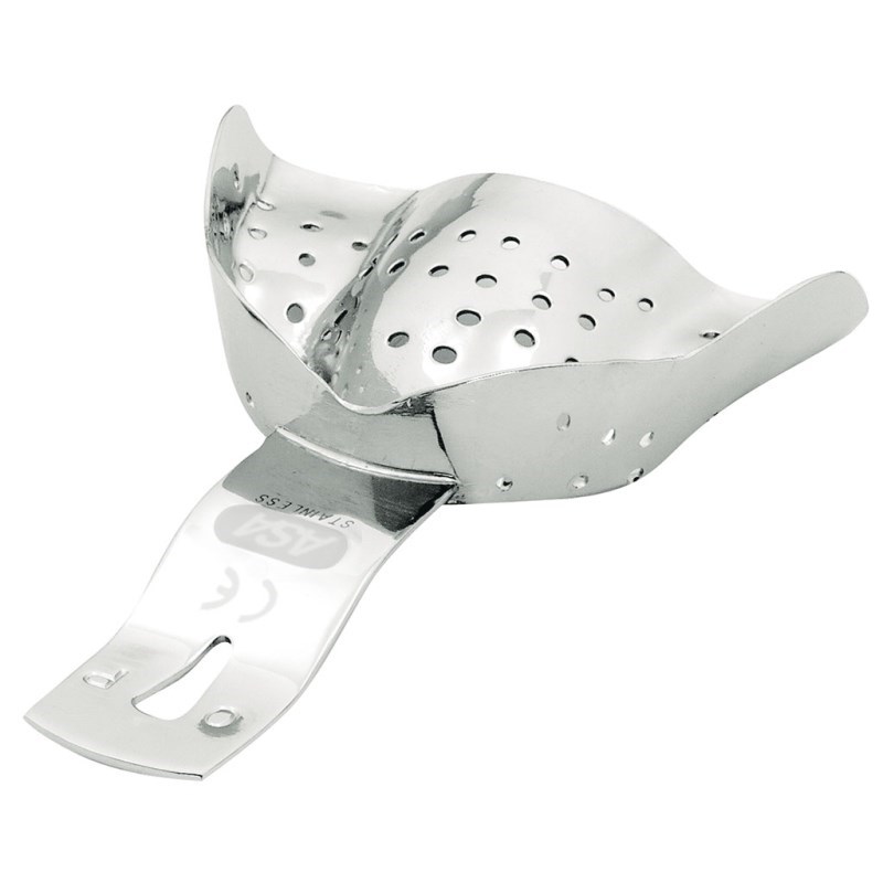 Ложка слепочная верхняя с перфорацией с бортиками для челюстей с частичным отсутствием зубов 70*56 мм.