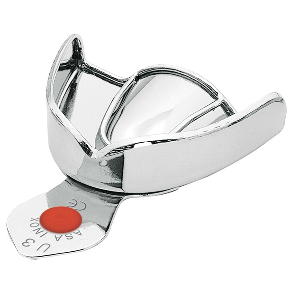 Ложка слепочная верхняя средняя (M) без перфорации с бортиками 71*55 мм. С силиконовой цветокодированной вставкой для более легкого извлечения слепочной ложки из полости.