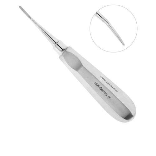 Люксатор HLW 13-5LX изогнутый 2 мм, изготовлен немецкой компанией HLW Dental Instruments, который применяется для атравматичного удаления корней и зубов на нижней и верхней челюсти. Для деликатного рассечения периодонтальной связки зуба рабочая часть инструмента имеет тонкое режущее лезвие овальной формы. Изгиб на конце соединительного стержня люксатора обеспечивает удобный доступ в периодонтальную щель удаляемого зуба. Люксатор надежно фиксируется и не скользит в руке, благодаря граням и выемкам под пальцы с двух сторон на стандартной ручке инструмента. Такая конструкция очень удобна в использовании и способствует успешному проведению операции.