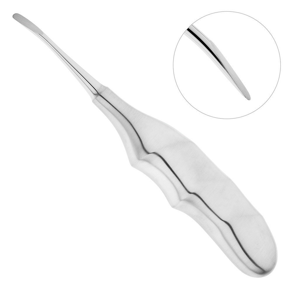 Для атравматичного удаления корней и зубов на нижней и верхней челюсти используется люксатор с шириной рабочей части 4 мм производства немецкой компании HLW Dental Instruments.