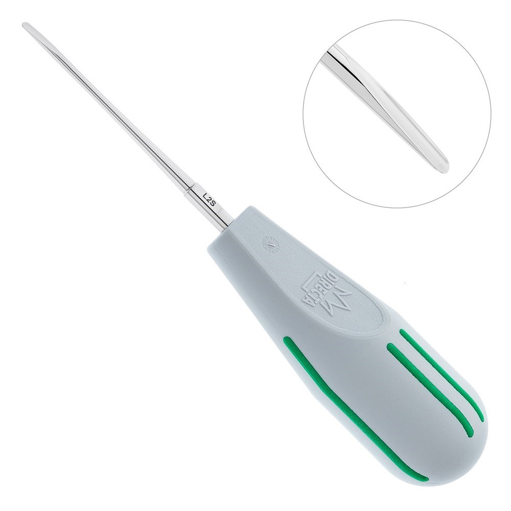 Люксатор Periotome от производителя Directa это специально разработанный нож для пародонтальной связки с тонкими сужающимися лезвиями, который сжимает альвеолярную кость, разрезает мембрану и осторожно высвобождает зуб из лунки. Вся операция проводится с минимумом повреждения тканей.