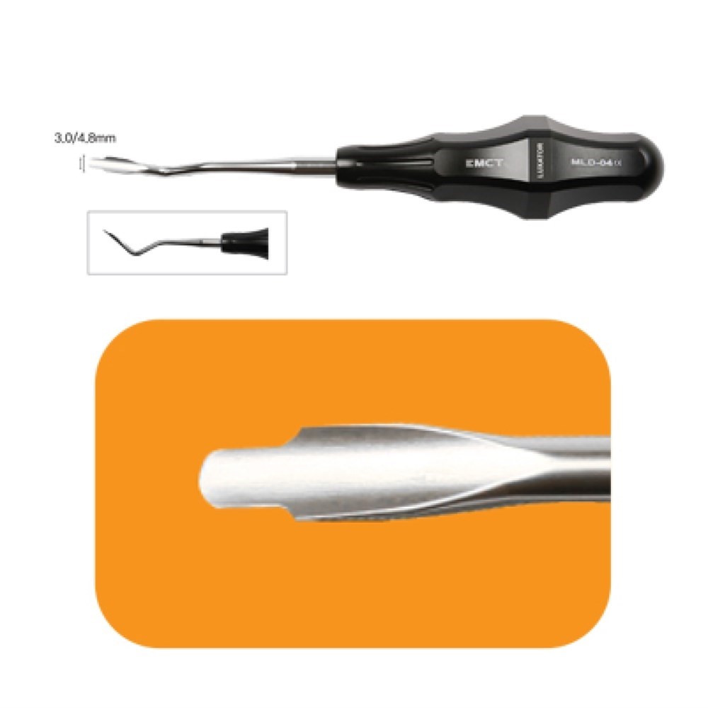 Люксатор-периотом Power Grip D04, с двойной кромкой, изогнутый вверх, для дистальных и проксимальных сторон премоляров и моляров, ширина 3,0/4.8 ммMLD-04 Стоматологический Люксатор-периотом Power Grip D04, с двойной кромкой, изогнутый вверх, для дистальны