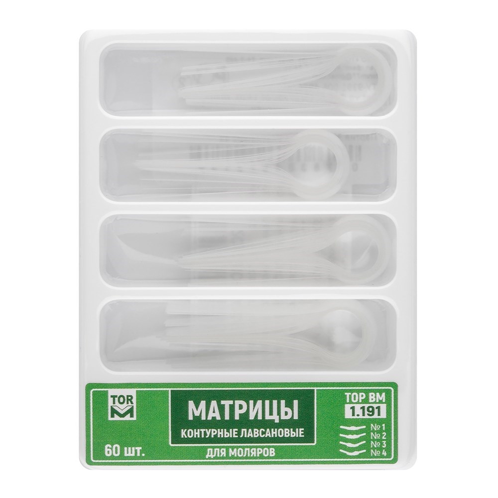 Набор матриц и приспособлений стоматологических для моделирования пломб "ТОР ВМ". Матрицы контурные лавсановые для моляров 4-х форм, 60шт "ТОР ВМ", 1.191